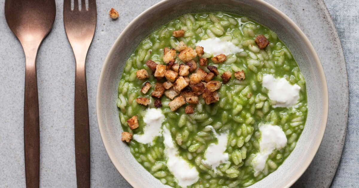 Ce risotto à la crème de laitue et burrata est parfait pour un dîner raffiné et simple à réaliser, alliant élégance et simplicité dans chaque bouchée !
