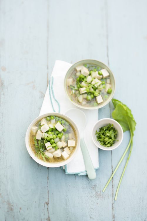 3. Hors du feu, incorporez des cubes de tofu et le miso préalablement dilué. Remuez délicatement pour bien mélanger le tout.