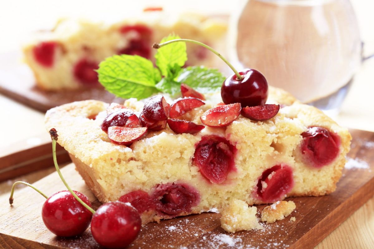 L'astuce du chef : Les cerises peuvent avoir tendance à descendre au fond du cake pendant la cuisson. Pour éviter cela, déposez-les sur la partie supérieure du gâteau, après avoir étalé une première couche de pâte dans le moule.