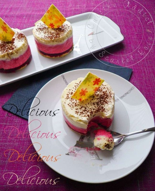 - Mousse à la framboise : coulis de framboise, gélatine, crème liquide