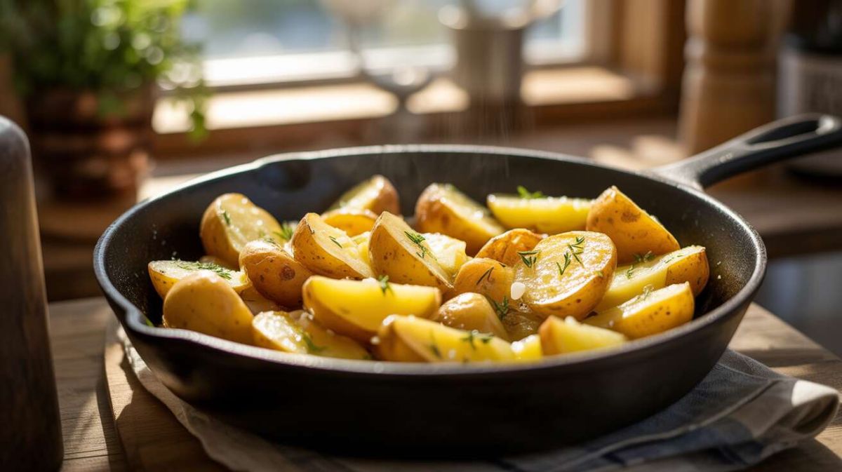 Chauffez une matière grasse (huile ou beurre) à feu vif dans une grande poêle. Ajoutez les pommes de terre en une seule couche pour garantir une cuisson équilibrée. Ne remuez pas durant les 10 premières minutes pour obtenir une belle croûte dorée.